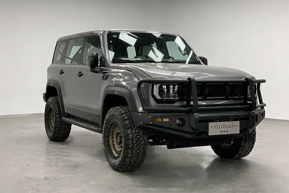 - Nearly 4.8-meter body with armor-style fender flares and reinforced front and rear bumpers.