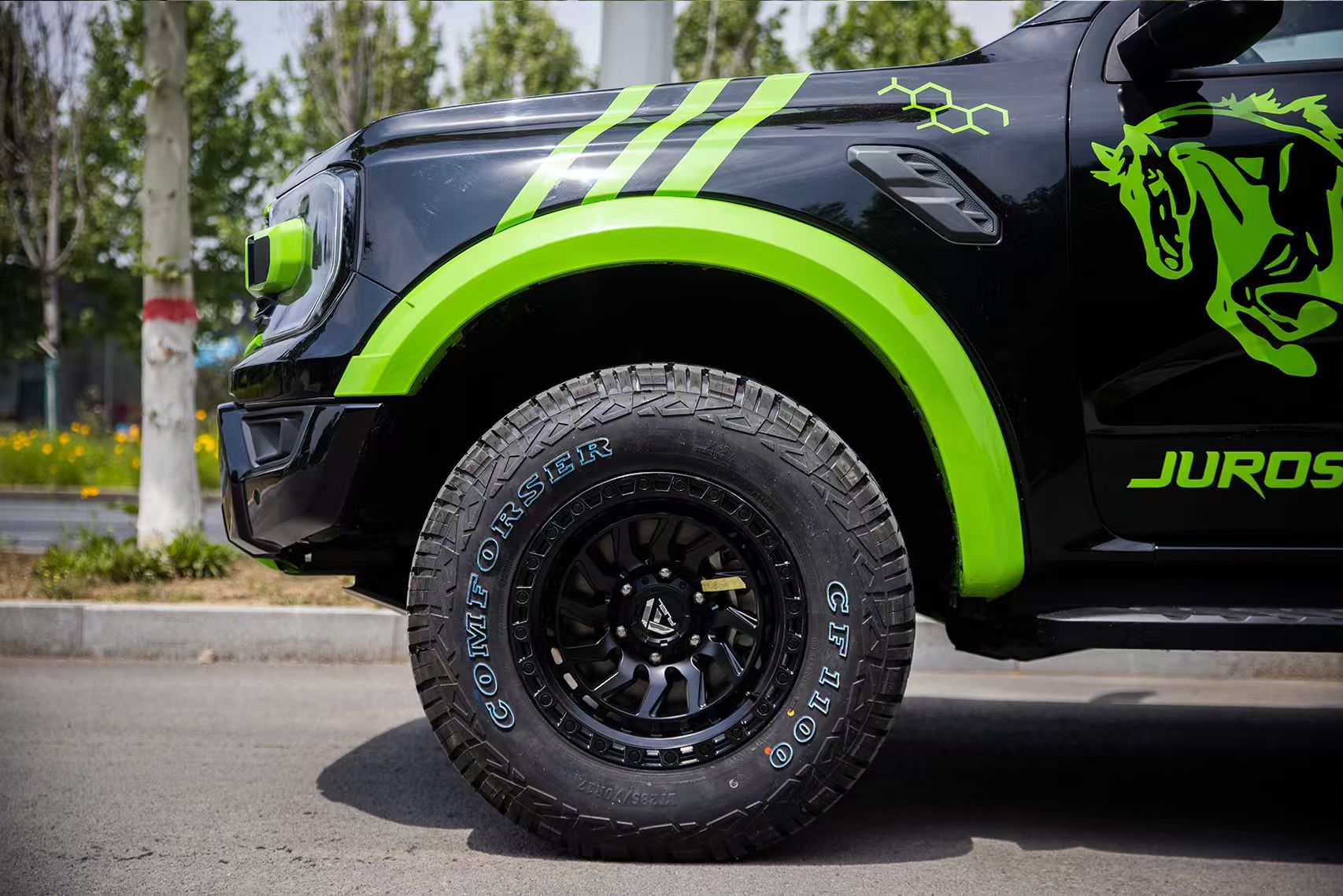 - 17寸轮毂搭配科马仕 AT 胎(285/70/17),抓地力与通过性卓越