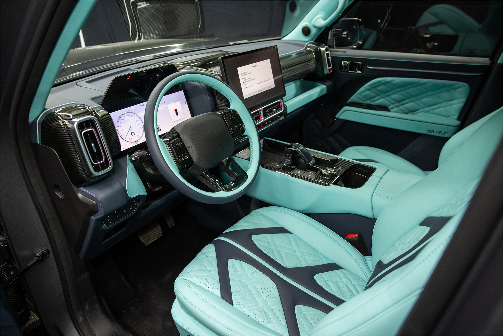 - 氛围灯、20寸轮毂与王军轮毂变径圈搭配,整体造型硬派且精致