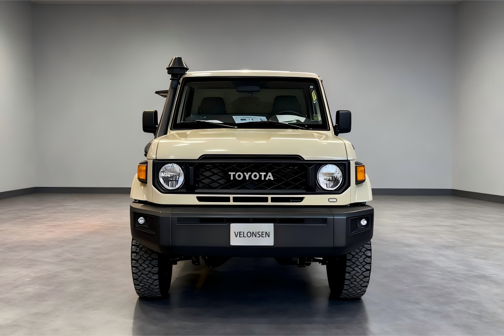 - 采用沙米色漆面,保留传统越野机械美感,同时通过改装细节凸显专业属性