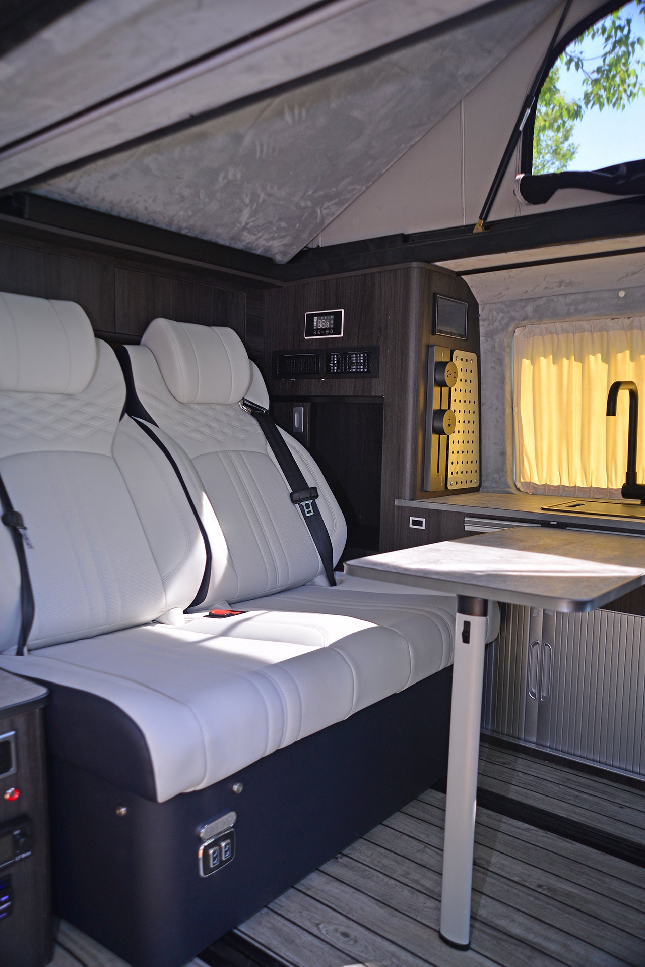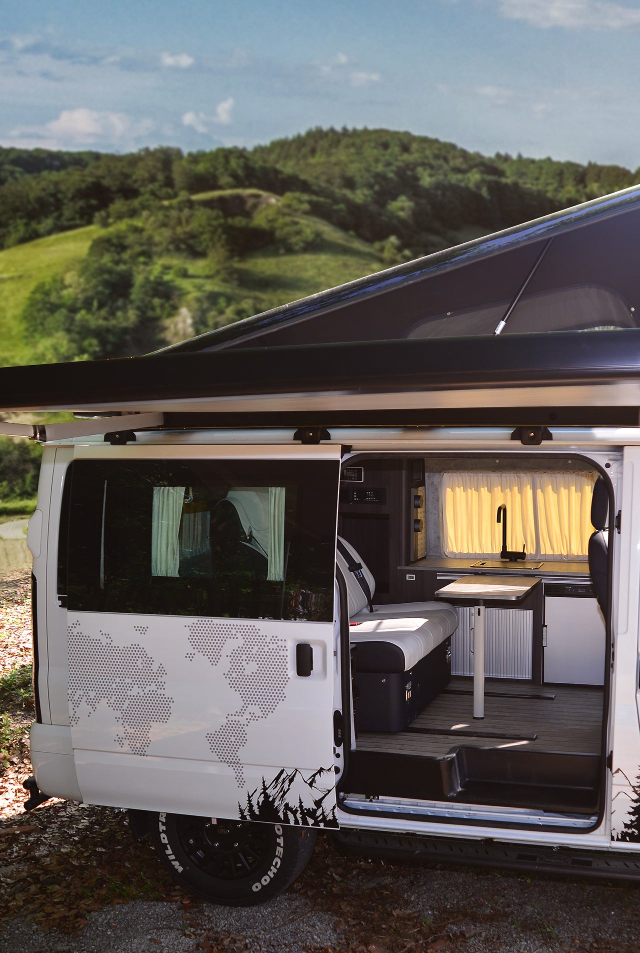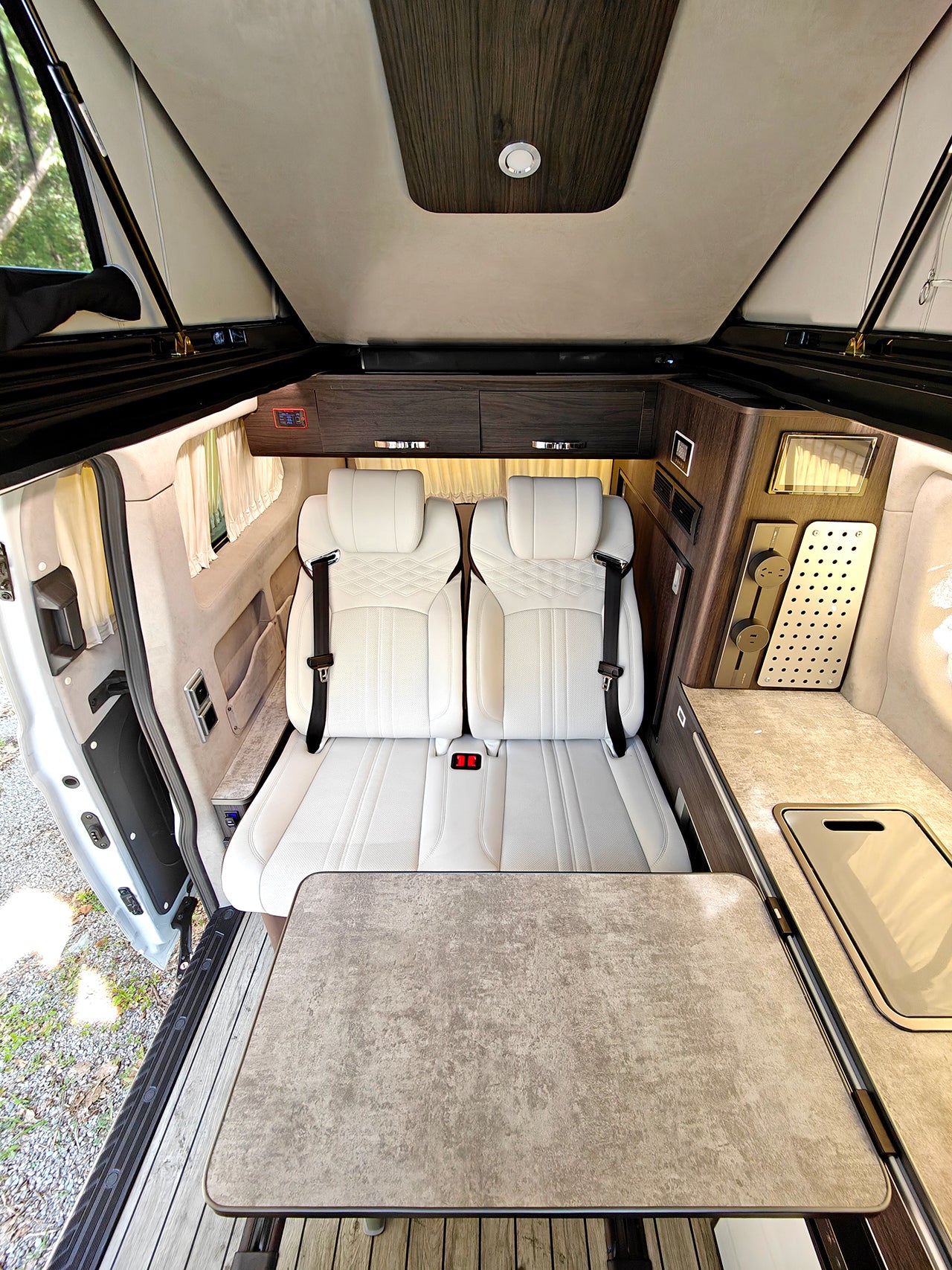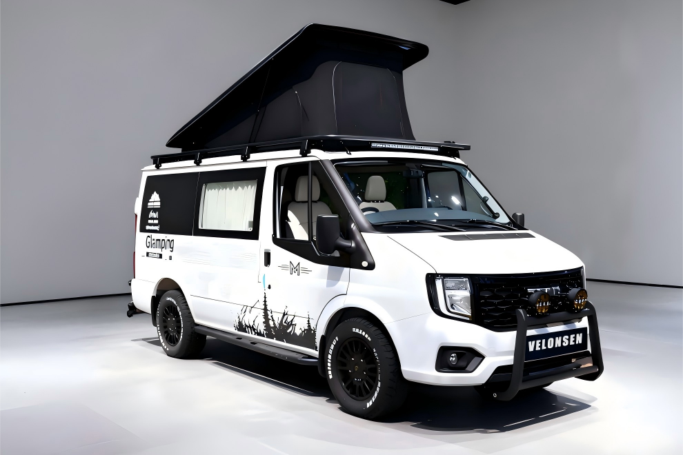 Enjoy 宿营车基于福特福顺经典款底盘改装,搭载 2.0T 柴油涡轮增压发动机与后驱系统,匹配 8AT 变速箱,兼具动力与平顺。车身高度适配地下车库,兼顾城市通勤与户外探索。配备户外餐厨、升顶帐篷及多功能储物系统,为你打造集舒适、实用与自由于一体的移动生活新体验。