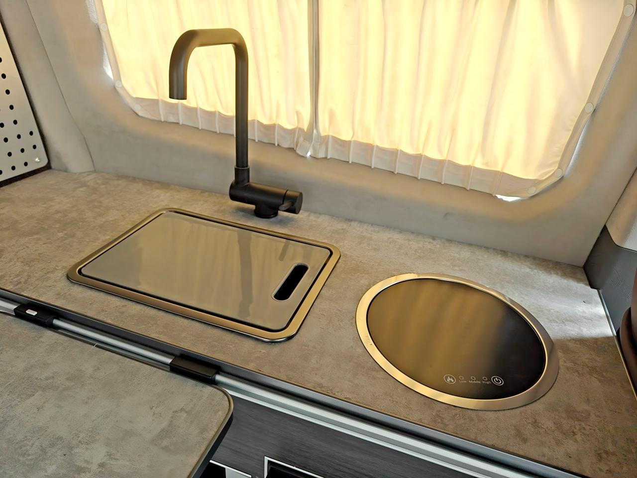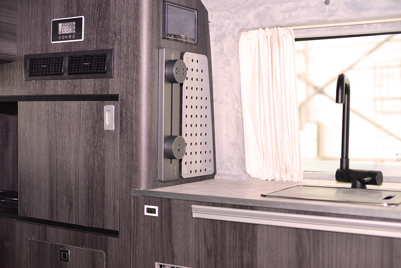 - 户外餐厨系统:配备水槽、电磁炉、烤架与 50 L 冰箱