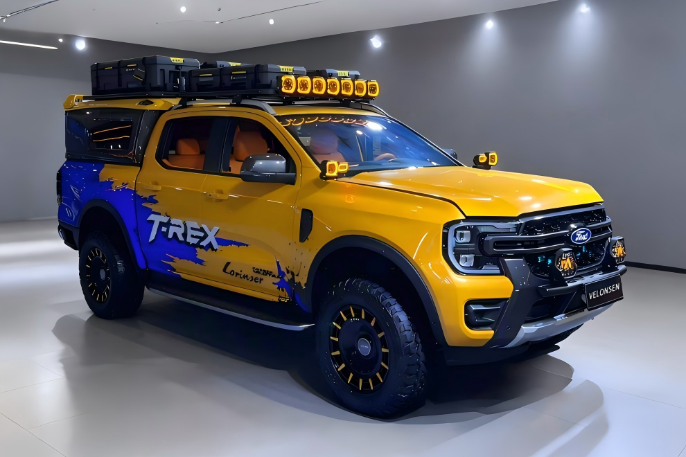 基于福特 Ranger Wildtrak X打造的 T-REX 定制改装版,是越野性能与个性设计的极致融合。它承袭了福特 Ranger 系列的硬核越野基因,又通过专属改装套件,成为荒野探险与城市吸睛的双重标杆。搭载 2.0L 双涡轮增压柴油发动机,最大功率 150kW,峰值扭矩 500N・m,匹配 10 速自动变速箱,配备全时四驱系统,兼具公路巡航的平顺性与越野脱困的爆发力。