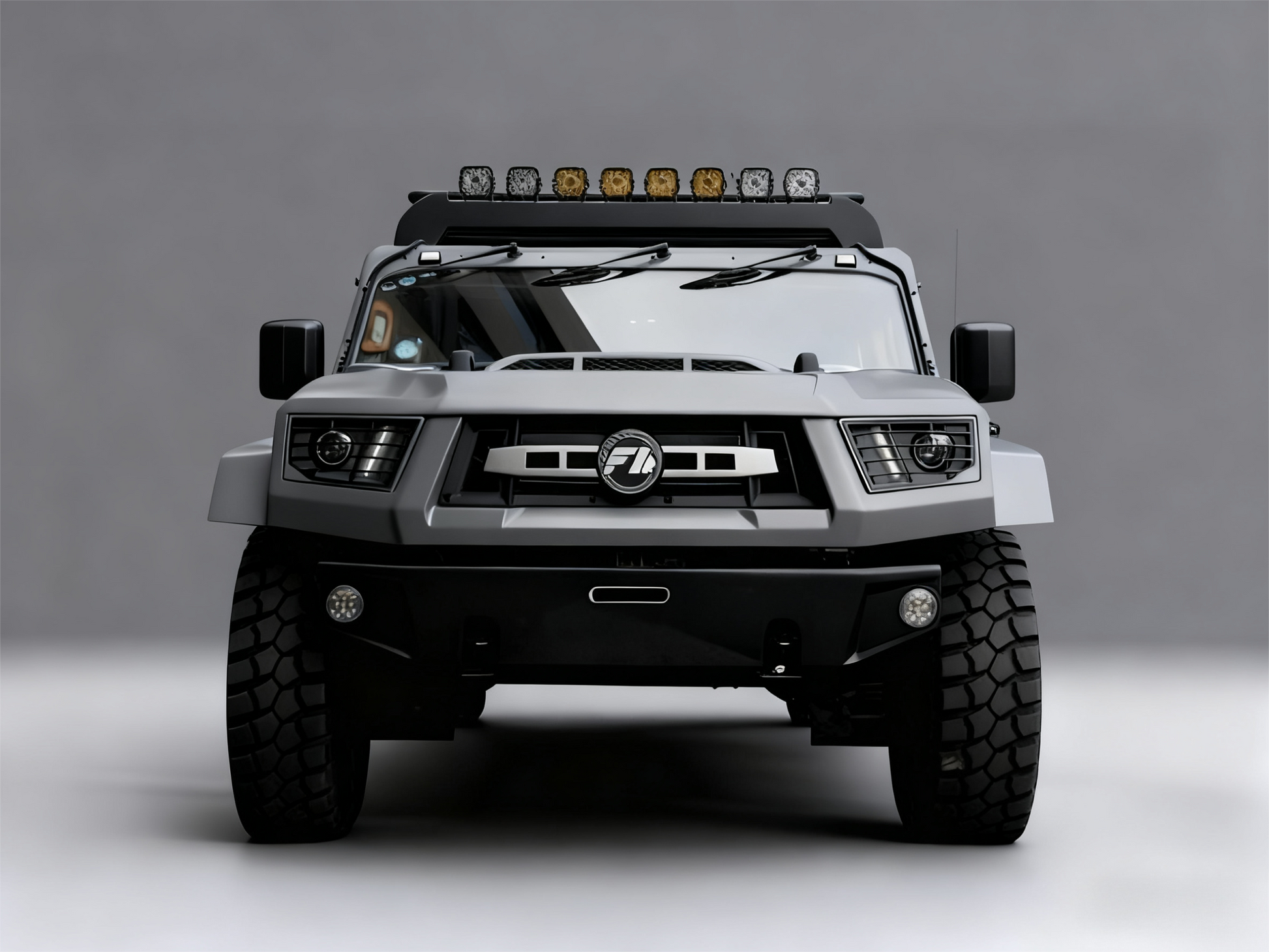 东风猛士 M50 强汉版,搭载康明斯 4.5T 涡轮增压柴油发动机,匹配法士特 5MT/6AT 变速箱及全时链式分动箱系统,具备强劲动力与卓越越野性能。凭借军工级底盘结构、全地形通过能力与多功能取电取气接口设计,让它不仅是一台越野机器,更是复杂地形的征服者。